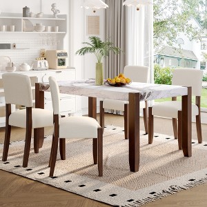 5-Piece Dining Table Set for 4, Faux Marble Table & 4 Upholstered Chairs with Solid Rubberwood Legs - ModernLuxe