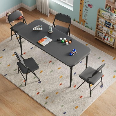 5-Piece Kids Folding Table and Chairs Set, Toddlers Children's Activity Table and Chairs Set for Dining Room,Daycare,Classrooms, Black