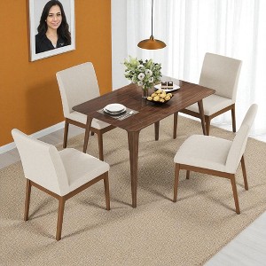 5-Piece Mid-Century Modern Dining Table Set with Solid Wood Frame Table and 4 Upholstered Chairs for Dining Room