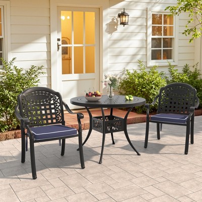 Enjoy outdoor comfort and style with this cast aluminum patio set featuring 360° swivel chairs and a black rectangle table . Made from rust- and corrosion-resistant cast aluminum, this set is built to last through all weather conditions. The swivel chairs allow easy movement and relaxed conversations with family and friends. The spacious table is perfect for meals, drinks, or décor, adding both function and charm. Ideal for patios, gardens, or balconies, this elegant set brings comfort, durability, and convenience to your outdoor space—perfect for gatherings, meals, or quiet moments.