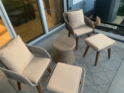 【Elegant Patio Conversation Set】Our luxurious 5-piece set includes an outdoor loveseat, two outdoor club chairs, a wicker side table and two footstools. Style is of the essence and we work hard to add stunning appeal to your backyard, lawn, garden, poolside or gathering place.