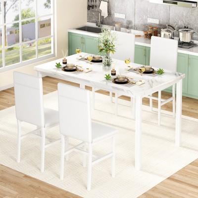 5 Piece Round Dining Table Set for 4, Modern Marble Dining Table and 4 High Back Upholstered Chairs