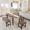 5 Pieces Dining Table Set for 4-6, 63" Large Extendable Dining Room Table Set for 4, Kitchen Table with Benches and Stools, Kitchen Table Set, Dinner Table Set for 6, Ideal for Small Space-Walnut