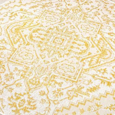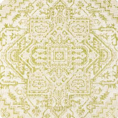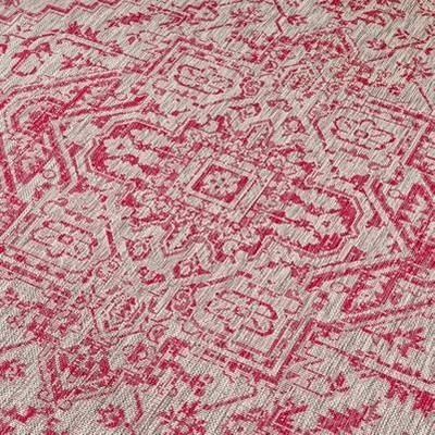 This rug was not only very decently priced compared to so many indoor/outdoor rugs but it is so pretty and I can see so many uses for this rug. The dark red is beautiful and the light beige almost silvery looking background makes this a great accent for almost any space!