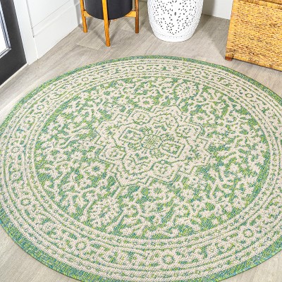 JONATHAN Y Estrella Bohemian Medallion Textured Weave Cream/Green 5 ft. Round Indoor/Outdoor Area Rug, Non-Shedding, Easy-Clean
