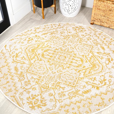 JONATHAN Y Malta Bohemian Medallion Textured Weave Cream/Green 5 ft. Round Indoor/Outdoor Area Rug, Non-Shedding, Easy-Clean