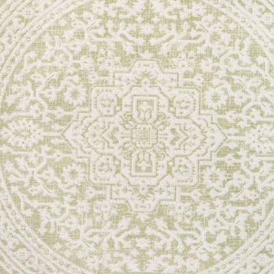 JONATHAN Y Sinjuri Medallion Textured Weave Green/Cream 5 ft. Round Indoor/Outdoor Area Rug, Non-Shedding, Easy-Clean