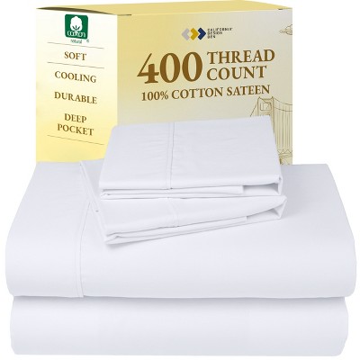 Enjoy a refined, premium feel every night with our 600 Thread Count 100% natural cotton sheets. The lustrous, closely woven soft sateen weave and breathable nature of our fabric keeps you soft and comfortable throughout the night making them ideal for hot sleepers. Designed to fit securely, our california king white sheet set has an all-around durable elastic so you sleep comfortable while head/foot side indicators make bed-making a breeze. Machine washable and durable, they are tested for shrinkage, pilling and fading. Every item bearing the OEKO-TEX® STANDARD 100 label is certified as having passed safety tests for harmful substances. Customer satisfaction is our top priority, and returns are easy with a 90-day return period.