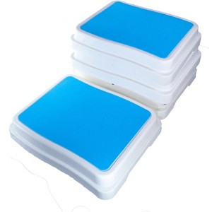 Built with sturdy plastic, this stackable bath step withstands regular bathroom conditions. The white frame pairs with a blue textured top, creating a matte finish that's easy to clean. Anti-slip legs and adhesive pads ensure it grips surfaces reliably. Each platform measures 19 inches square and 3 inches high, forming a solid base that holds up to 400 pounds. The design includes stacking holes and pegs for secure assembly, proving its robust construction for repeated use.