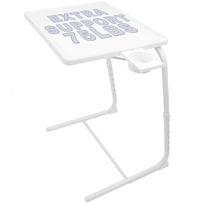 The table is a nice size but not quite as sturdy as I’d hoped. It was very easy to put together. I was disappointed with the tilt mechanism in that the bar needs to be snapped into place. Also, the cup holder isn’t big enough to accommodate an insulated tumbler and isn’t sturdy. I didn’t have the opportunity to use the tablet/book holder so I can’t comment on that other than to say it’s nice that it’s stored underneath the table. The table will definitely serve its purpose but, as I said, it’s not as sturdy as I’d hoped it would be. I would recommend it if you aren’t going to be putting a lot of pressure on it and would be very cautious using the cup holder.