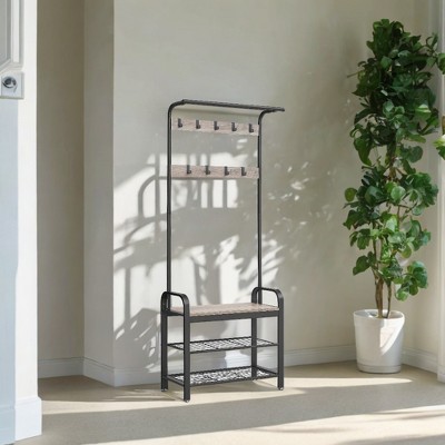 5-Tier Coat Rack Dustproof Entryway Hall Tree Clothing Shelf Shoe Rack W/8 Removable Hooks Freestanding Hat Clothes Organizer for Front Door Bedroom