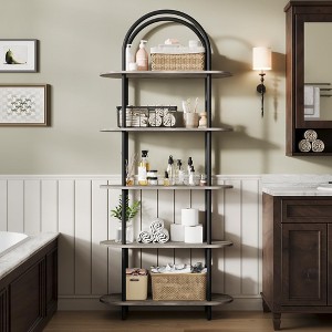 5 Tier Open Bookshelf Arched Display Racks Tall Bookshelf Freestanding Open Storage Shelf with Sturdy Metal Frame for Bedroom Living Room Home Office Bathroom Black + Graphite Gray
