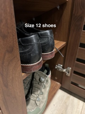 This cabinet looks great and was fairly easy to put together, but it does not fit mens shoes. My son wears size 10 shoes and after placing them in the cabinet, the door does not close flush. So needless to say my husbands size 12 shoes are a bigger problem. Now I have to go through the hassle of returning it.
