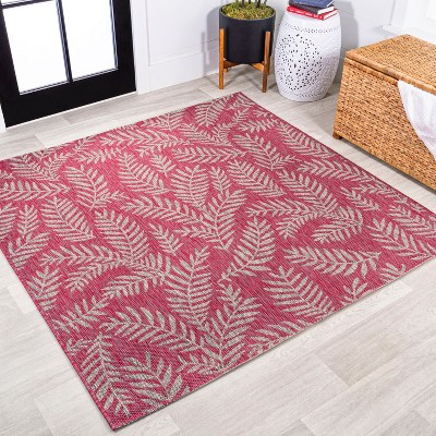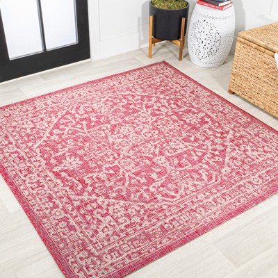 JONATHAN Y Charleston Vintage Filigree Textured Weave Fuchsia/Light Gray 5 ft. Square Indoor/Outdoor Area Rug, Non-Shedding, Easy-Clean