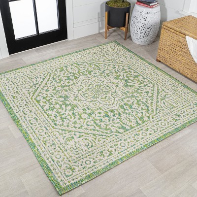 JONATHAN Y Ourika Moroccan Geometric Textured Weave Cream/Orange 5 ft. Square Indoor/Outdoor Area Rug, Non-Shedding, Easy-Clean