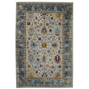 Add great coloration and comfortable texture to your space with this 5-foot x 7-foot gray blue and orange area rug. Ideal for spaces with kids and pets, this rug is stain resistant to help repel dirt and spilled liquids. Built to last, this rug crafted from polypropylene fibers is known for its durability and long lasting appeal. Rugs are a great way to showcase your style, hide imperfections, warm your home and reduce noise. This larger sized, persian styled rug is ready to create a focal point or statement piece in your room. 63.00-inch h x 90.00-inch w x 0.38-inch d.