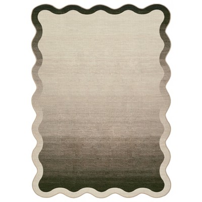 5'x7' Light Taupe Washable Modern Scalloped Rugs for Living Room Bedroom, Geometric Bordered Non Slip Throw Carpet for Dining Room Office