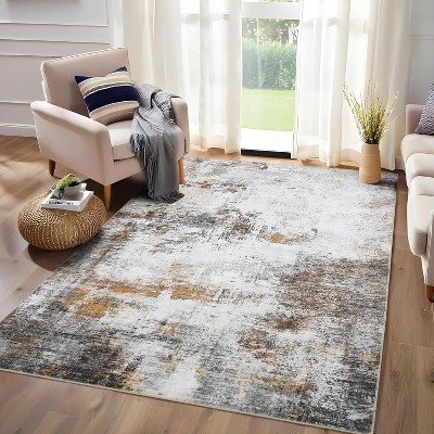 5'x7' Modern Geometric Trellis Washable Area Rug - Non-Slip Low-Pile Indoor Carpet for Living Room, Bedroom, Dining Room Brown tone