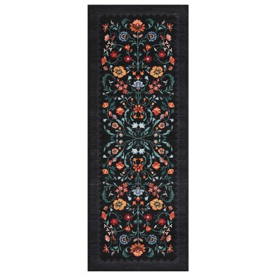 5'x7' Washable Modern Living Room Rugs with Peacock & Floral Print, Soft Non Slip Bedroom Carpet, Low Pile Dining Room Rugs, Black