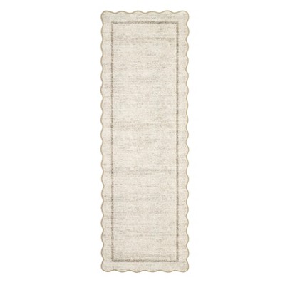 Washable Modern Scalloped Area Rug for Living Room Bedroom, Solid Bordered Soft Non Slip Dining Room Carpet for Home Decor