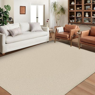 5'x7' Washable Modern Solid Large Area Rugs for Bedroom Living Room, Soft Non Slip Textured Carpet for Home Office, Beige