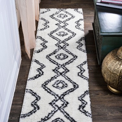 Inspired by vintage Beni Ourain Moroccan rugs, our soft and fluffy shag yarns make it easy to go barefoot. The classic Moroccan pattern has deep black diamonds on a field of ivory. Anchor your Bohemian space; add softness to a bedroom, living room, or cozy reading nook; this is a low-pile shag rug with timeless style.