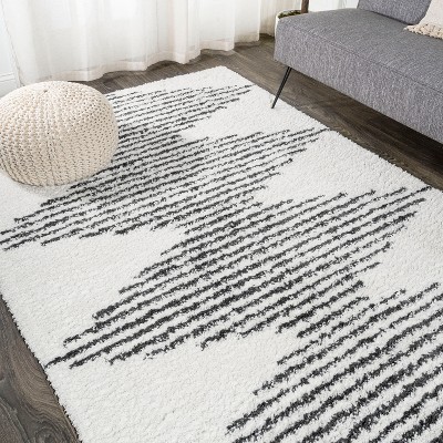 JONATHAN Y Elm Diamond Stripe Geometric Shag Rug, Non-Shedding, Easy-Clean, Durable Synthetic Fibers