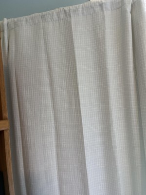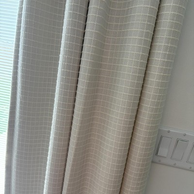 This Blackout Textured Plaid Curtain Panel from Threshold™ adds elegant style to any room while helping block out sunlight. Made from woven fabric with lining in gray, this blackout curtain panel features a classic textured plaid pattern. Designed to keep your space darker, it features a back tab and rod pocket for easy installation and can be machine washed to clean as needed.