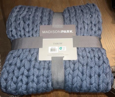 [This review was collected as part of a promotion.] I recieved this throw blanket from Madison Park and Influenster in exchange for my honest review! I am obsessed with this blanket! I am a person that needs to have a blanket on them every time they are on the couch and this one is amazing! It looks so stylish folded up on my chaise when it is not in use and is soo cozy to use! It is on the large end of a throw blanket (I would say an oversized throw) and I can cover myself completely which I love! It is a knit blanket, so it is quite breathable and has good temperature control - it keeps me warm and cozy without making me feel hot like similar sherpa fabric blankets do. Overall, the knitting is great craftsmanship, it is a soft and gorgeous blanket, it keeps me cozy, and the color is beautiful! Definitely recommend if you are looking for a stylish, but useful throw blanket!