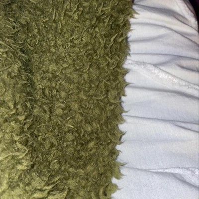 [This review was collected as part of a promotion.] I really like the color of the olive green. It’s a very muted color and looks more like a neutral. It’s also very soft, so I’ve already had to fight the dogs for it a couple times. I would say the one downside is that it sheds really badly in the washer and dryer. Make sure that you follow instructions and wash it completely separately from other items the first time. It also feels like the type of material that will get messed up with dryer sheets, so we are avoiding those with this fabric.