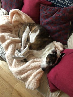 [This review was collected as part of a promotion.] This blanket is the BEST. it's so soft and squishy, everyone fights over it. My dog eventually wins the battle though and then he rubs his muzzle all over it, which is seriously adorable . We ALL love it so much. The color is perfect. Literally my only complaint about this blanket is it's not bigger. Then everyone could use it on the couch while watching tv. Now it just gets tugged from person to person. I'm completely looking forward to cooler weather so I can claim Mommy privilege and keep it all to myself.