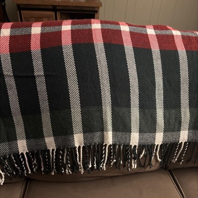 Infuse your decor with classic charm using this Plaid Value Throw Blanket from Hearth & Hand™ with Magnolia. This rectangular woven throw features a midweight acrylic construction with a classic plaid pattern in shades of red, white and dark green along with fringed-trim ends for elevated visual appeal. Perfect for curling up during cooler evenings or draping over furniture as a decorative accent, this versatile blanket offers easy care with its machine-washable fabric.
