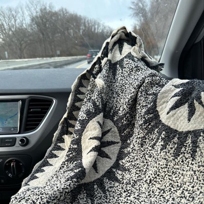 50"x60" Soleil Throw Blanket Black/Cream - Jungalow by Justina Blakeney: Bohemian Suzani Quilt Design, Tasseled Edges
