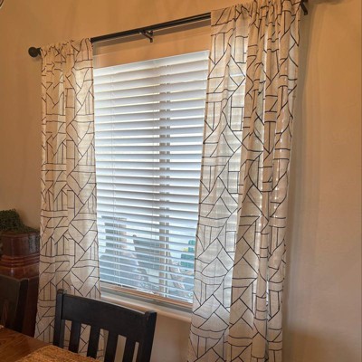 Abstract design and modern glam merge to create the Jigsaw Embroidery Linen Blend Semi-Sheer Rod Pocket Curtain Panel from Archaeo. A perfect complement to mid-century modern decor, this airy weave linen blend curtain brings enviable texture and dimension to any room with an intricately embroidered abstract geometric design. The semi-sheer linen blend fabric gently filters light while enhancing privacy. Pole top rod pocket design allows for simple slide-through installation on curtain rods up to 1 ½" in diameter.