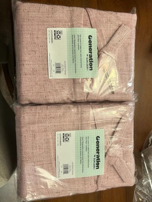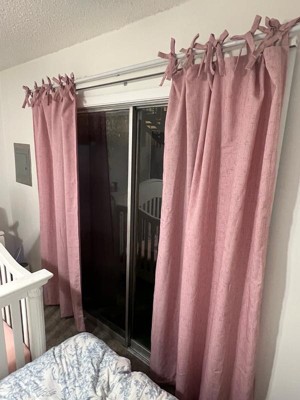 Topped with tacked bows, the Roxy Curtain Panel from Sun Zero is a casual textured curtain with a modern style that will enhance the appearance of any living space.. Slub textured semi-sheer fabric gently filters light while enhancing privacy. The unique tie top design allows for easy installation on a standard or decorative curtain rod up to 1.5" in diameter. Sold as individual panels measuring 50" width by 63" length in color pink. Measure carefully before selecting your desired size and quantity. Rod not included. Machine wash cold on gentle cycle. Use non-chlorine bleach when needed. Line dry, using a cool iron as needed.