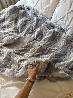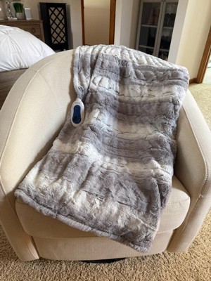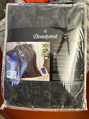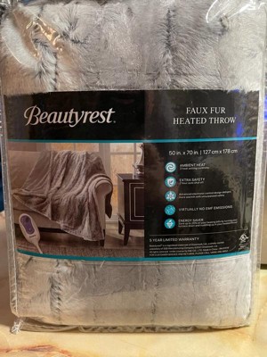 Beautyrest Marselle 50"x70" Oversized Faux Fur Electric Heated Throw Blanket Gray/Blue: Oversized, Machine Washable