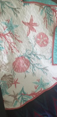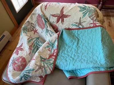 This Madison Park quilted throw creates a casual coastal look. The throw features starfish and coral motifs accentuated with coral and aqua colors and reverses to an aqua blue. It's oversized and overfilled for added comfort and style. Simply turn it over when you need a refresh, and drape it across your couch or chair for a pop of vibrancy.