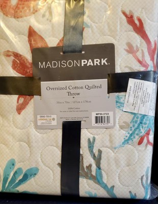 [This review was collected as part of a promotion.] Madison Park Pebble Beach oversized cotton quilted throw is absolutely beautiful. It matches my coastal beach theme in my bedroom. The quilted throw is an absolute must to add warmness on cool nights. The throw can also be used with a lounge chair, too. I highly recommend this beautiful throw by Madison Park.