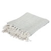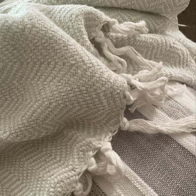 Wrap yourself in ultimate comfort with this Rizzy Home 50" x 60" woven throw in 100% cotton, the perfect addition to any modern farmhouse inspired living space. Featuring a chevron stripe design, the woven two-color patterning is elegantly crafted with self-fringed ends and hand-tied tasseling accents to elevate the overall design with a uniquely artisanal touch. The lightly brushed finish on both sides of the throw exudes a luxurious soft texture and feel that's irresistibly soft in a light gray color that will elevate any modern farmhouse décor, and can easily transition into other motifs and color palettes.