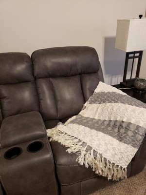 The Nubby Design Striped Throw Blanket brings texture, warmth and dimension to your home. The design features contrasting wide stripes and nubby texture, completed by long tassel edges. It's easy to pair, but can also be used on its own, as it quickly fills in the space, and adds a bit of color to your décor.