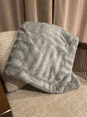 [This review was collected as part of a promotion.] Super soft and cozy with a nice geometric pattern throughout. The grey shade pretty much goes with anything. I wouldn’t consider it oversized or a large blanket, but it’s the perfect size for one. It’s great for the couch!