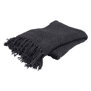 Wrap yourself in comfort and style with this 50" x 60" dark gray open dense net-like patterned throw from Rizzy Home. Modern industrial meets contemporary style inspiration with elevated craftsmanship in the flat woven edging and fringe with hand tied tasseling accents. This throw is elegant and urbane as an addition to any chaise, bedding or seating arrangement while also adding an element of coziness and warmth to any home décor.