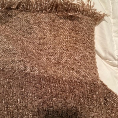 I’ve been looking for a high-end looking throw blanket for the living room, but I didn’t want to spend a fortune. I was excited to find this throw blanket at Target.com which replicates some you find at high-end stores. Such a beautiful throw blanket! I was hoping it wouldn’t be thin or itchy, and it’s neither. It’s so soft! I like the fabric. The color is called tan. I would describe the color as a muted soft warm caramel tan or a blend of light brown and golden beige tones. The color isn’t too warm or too cool. I haven’t washed it yet, but when I do, I would wash it on delicate in a front load, washing machine and tumble dry with low air. If you don’t have a front load washing machine, I suggest you put this beautiful blanket in a garment protector. I’ll probably buy another for guests.