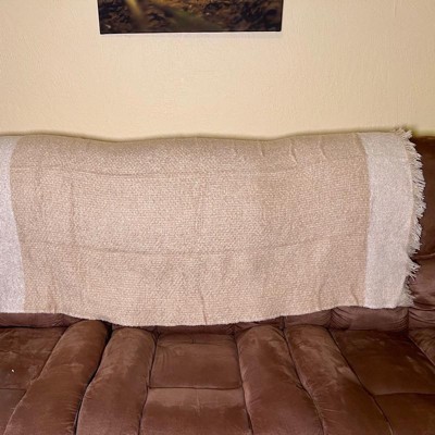 [This review was collected as part of a promotion.] This throw blanket measures approximately 50“ x 60“. It works perfect to curl up and cuddle with on the couch. This is super soft and fuzzy material. It has a slight fringe around the outside border of the blanket. The blanket is too toned in color with neutrals that will match any of your other home decor.