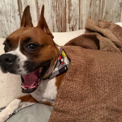 [This review was collected as part of a promotion.] I bought this tan, throw blanket to go over my couch to add a little more color to my living room. This blanket has a medium thickness and a woven pattern in the middle with a thick stripe at the ends and fringe at each end as well. I like the look and the soft feel of the fabric, however, upon opening the blanket, I see that there is already a pull in one of the pieces of yarn. I’m not sure if I can try to work it in with a needle or crochet hook, but I was hoping that it wouldn’t be this delicate. Overall, I like the color, texture, and the thickness of this blanket. I just don’t know how well it will hold up to kids and a dog.