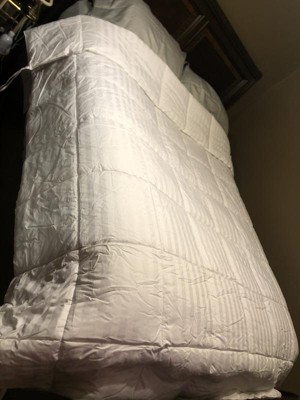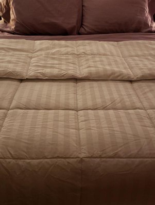 Very comfortable down alternative. Cotton shell is soft enough to use without feeling obligated to purchase a duvet cover. Replaced our previous Sealy one that was almost identical to this one. Inspected comforter upon arrival and found to be great quality. This contains a fair amount of fill in each square and is fluffy enough for my standards. We have slept with this comforter for several nights and as hot sleepers, we find this to be a great balance temperature-wise.