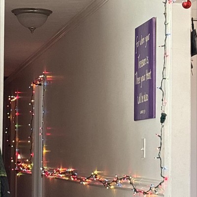 - Adorned with 50 multicolor incandescent bulbs
