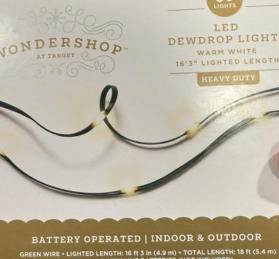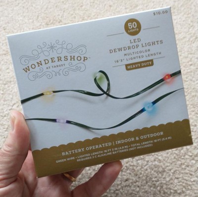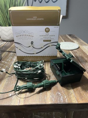 The Wondershop LED Dewdrop lights were a disappointment for me simply because the power box is way too big (for only 50 LED lights) and it takes C batteries - what ever takes C batteries these days?!? I haven’t bought those in Decades. For this reason alone I was not happy with these, however, the light do work as expected, but can’t get passed the setup.