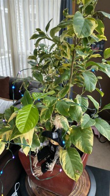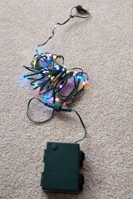 This lights string has 50 multicolor led lights on a green wire. It's not your classic plug-in string, it's battery powered, and requires two C batteries (not included in the box, but I happened to have a few unused C batteries at home). The lighted length is like 16 feet, and, since it doesn't require an electrical plug close by, you can use it to wrap around plants or décor around the house. Since those are led lights, there's no heat and the lights stay cool. The timer can leave the lights on for 6 hours, on repeat every day at the same time.