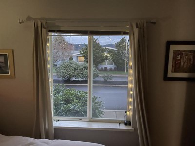 I reviewed these dewdrop lights before we decorated for the holidays. So, I have no Christmas tree or other holiday items to use them with. So, I just put them up indoors in one of the guest bedrooms. First off, their one big positive attribute is that they are definitely heavy duty quality - very sturdy! So, if you want to use them outdoors, they will totally hold up. In my mind, there are only two drawbacks: They require two C batteries and the there's a big, heavy, but sturdy battery box to hold them. But I'm surprised that LED lights require such big batteries. There's nothing particularly wrong with the big battery box. But if you have no where to hide the box, then it's kinda obtrusive - a bit of an eyesore if you have no where to hide the box. The other thing is that the LED lights don't bright. They are a nice warm, glowy shade of white. They feel homey, and warm, almost yellow in color. So, if you're using outdoors and you want them to be seen from far, far away, then this are not the right lights. But if you're going for a that warm, homey feel, then these are perfect. Another positive is that you can easily and confidently run 3 strands together. The connection piece is watertight.
